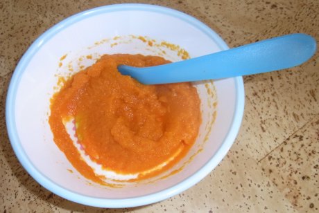 Καθαρίζουμε τα λαχανικά, τα κόβουμε σε μικρά κομμάτια και ψήνουμε σε μια κατσαρόλα με λίγο νερό, για περίπου 15 έως 20 λεπτά, μέχρι να μαλακώσουν. Απομακρύνουμε την κατσαρόλα από τη φωτιά. Πολτοποιούμε τα λαχανικά προσθέτοντας λίγο νερό. Ακολούθως προσθέτουμε το λάδι και ανακατεύουμε.